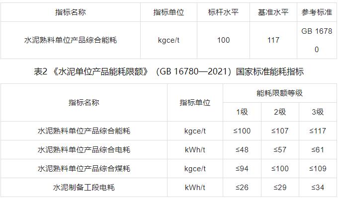 表1 水泥行業能效標桿水平和基準水平(2021年版)