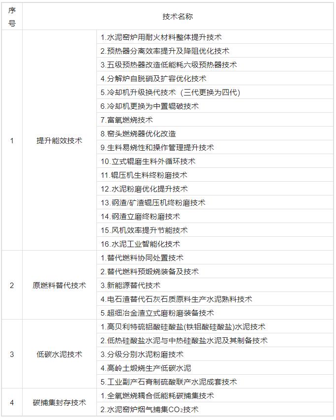 旨在提高現有水泥工業設備的性能和效率,通過技術優化和局部改進降低系統能耗,達到碳減排的目的,水泥企業可根據實際使用的設備及工藝狀況組合使用。
