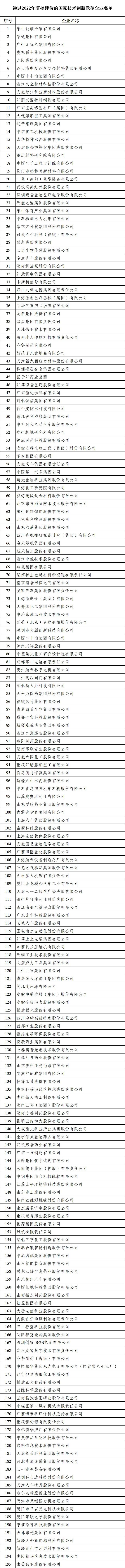2022年國家技術創新示范企業復核評價結果公布 多個建材企業入選