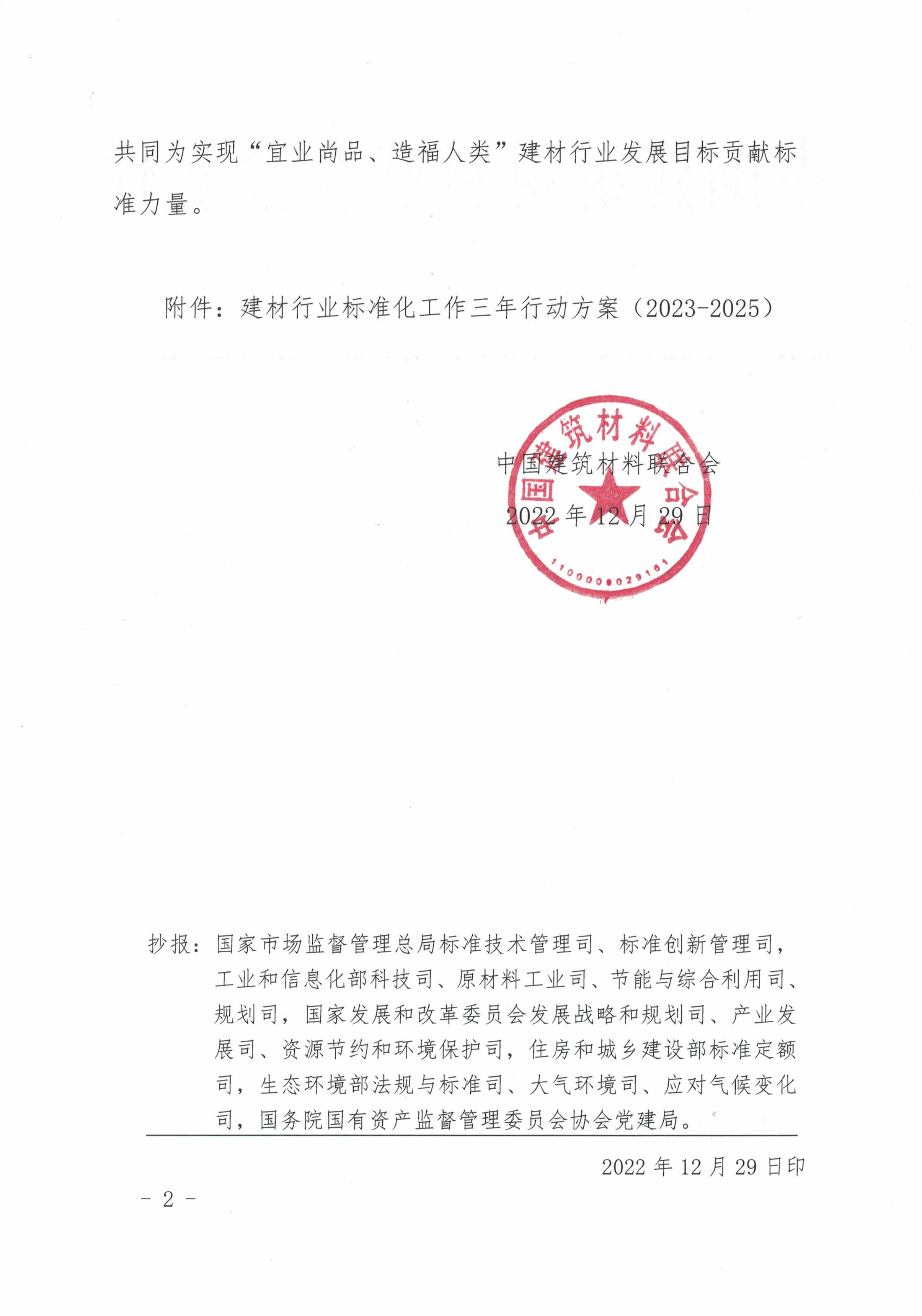 “十四五”時期是我國全面建成小康社會、實現第一個百年奮斗目標之后,乘勢而上開啟全面建設社會主義現代化國家新征程、向第二個百年奮斗目標進軍的第一個五年,特別是2023-2025年是我國應對氣候變化、實現碳達峰目標進入以綠色低碳為標志的高質量發展的關鍵三年,建材行業標準化工作要落實《國家標準化發展綱要》,把握新發展階段、貫徹新發展理念、構建新發展格局,充分發揮標準在推進建材行業綠色低碳、安全高質量發展中的規范、導向和提升作用。