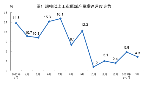 1—3月份,生產原煤11.5億噸,同比增長5.5%。進口煤炭1.0億噸,同比增長96.1%。