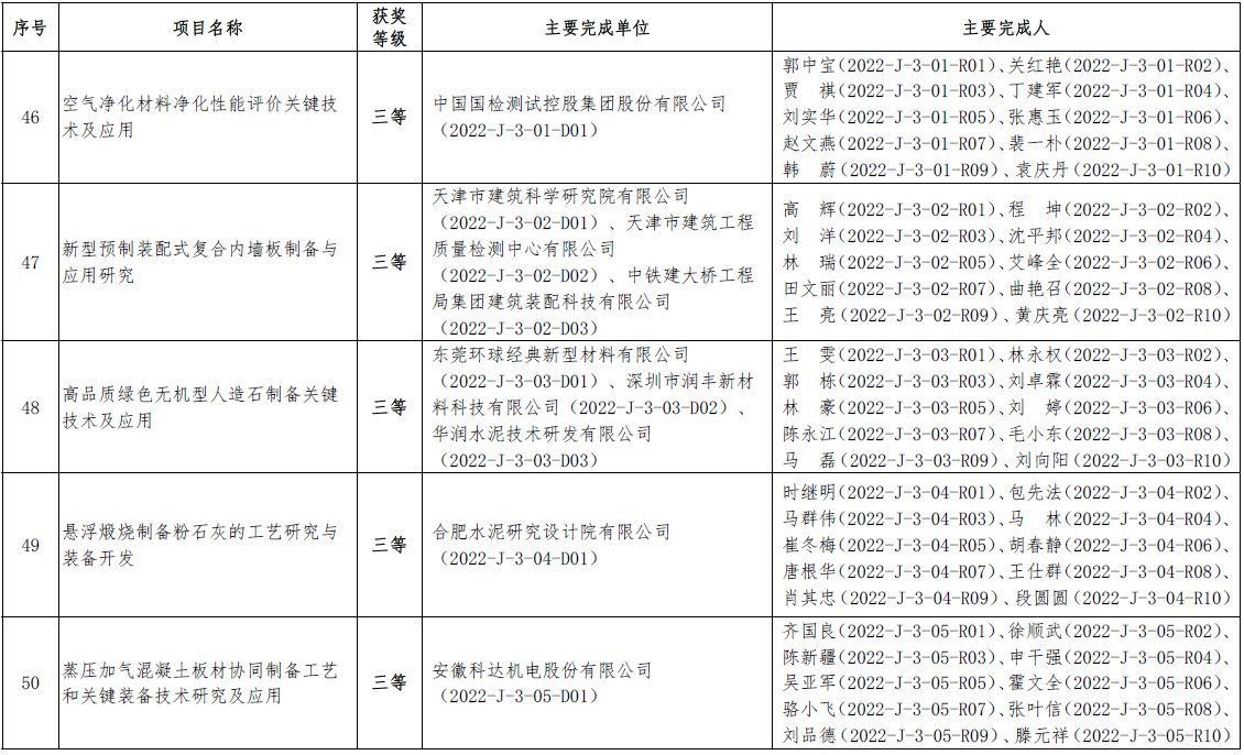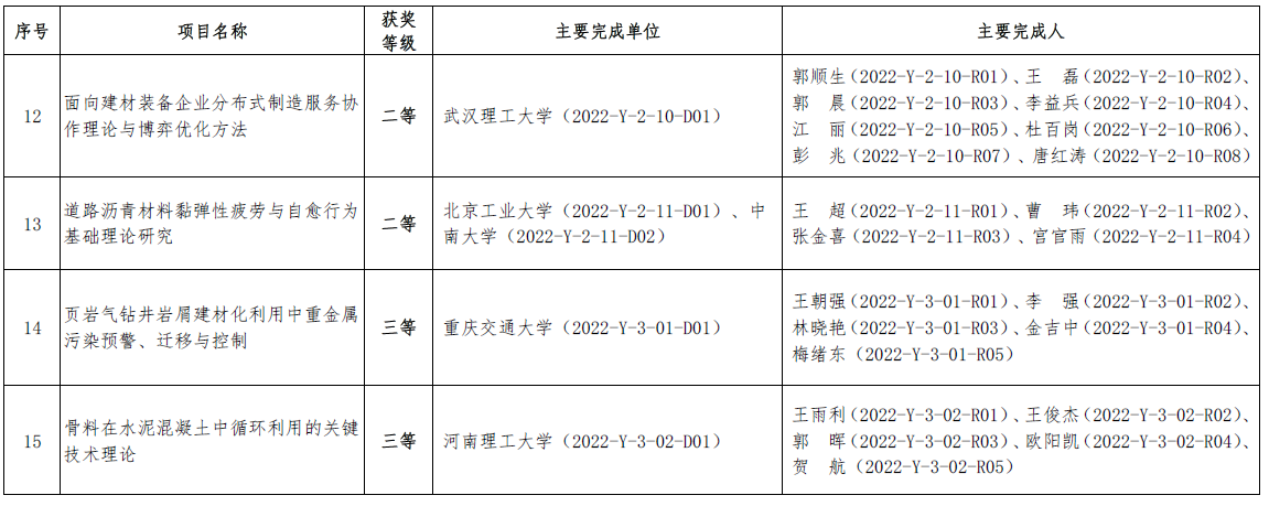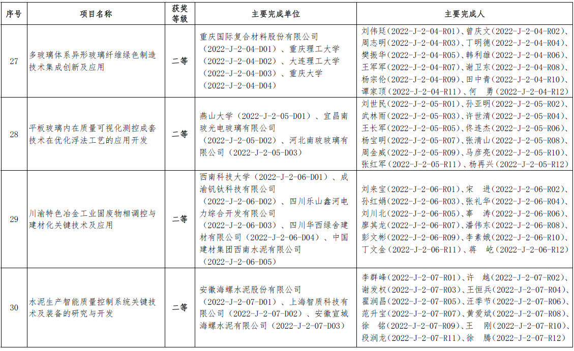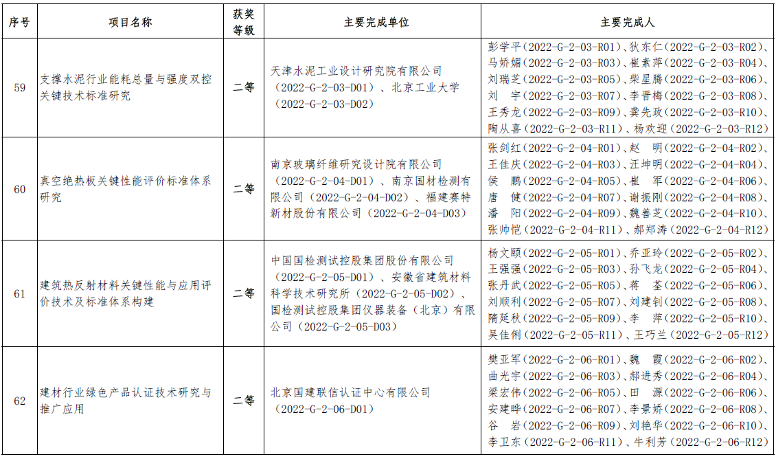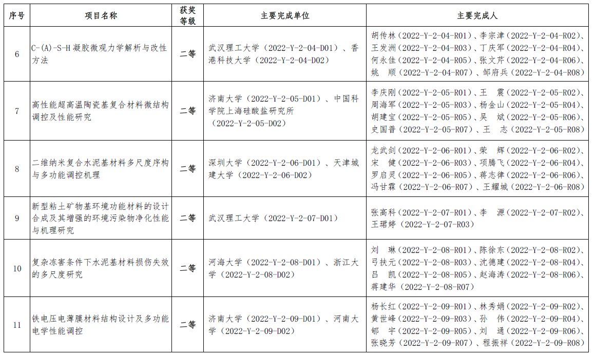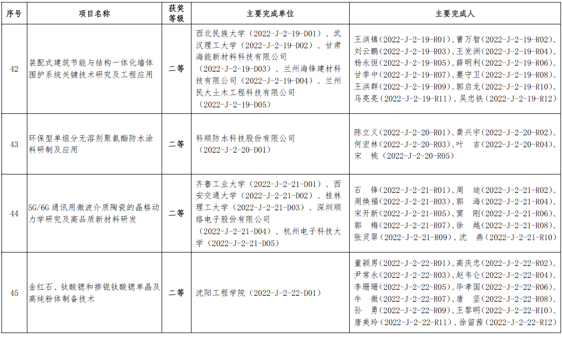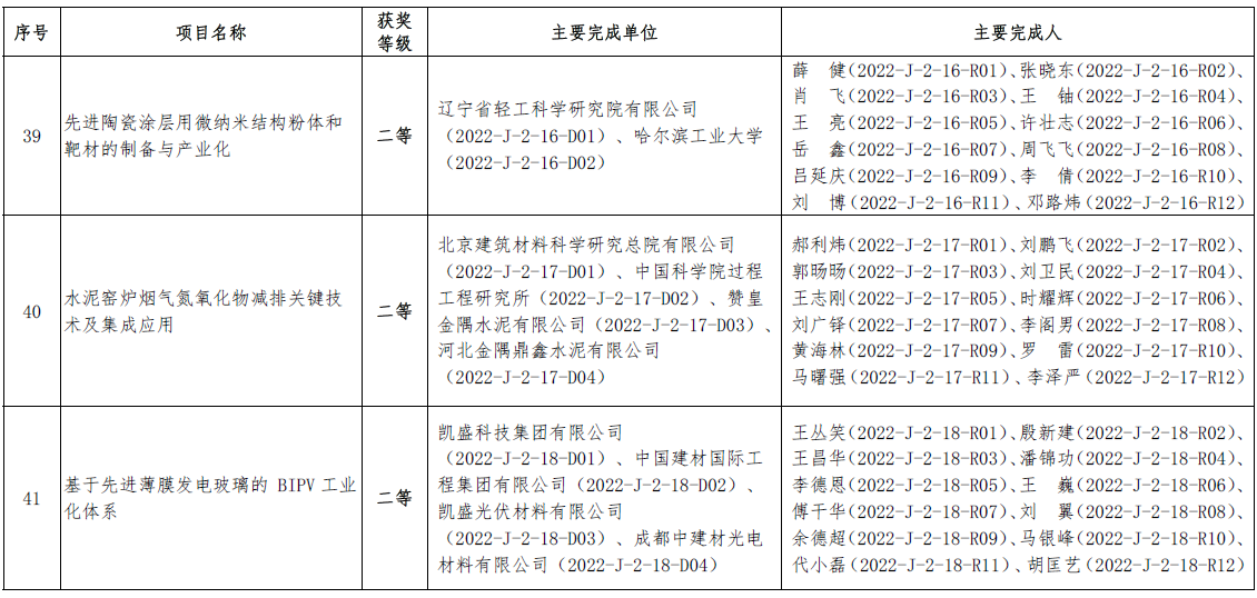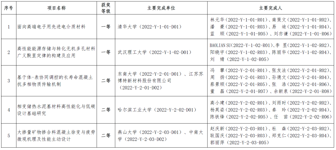 附件:2022年度中國建筑材料聯合會·中國硅酸鹽學會建筑材料科學技術獎獲獎項目