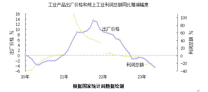 去年7月份以后,規模以上工業利潤總額同比持續下降。1-4月份同比下降20.6%。