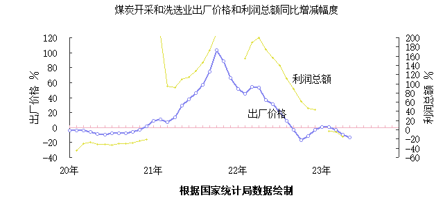 2020年12至2022年8月,煤炭價格大幅度上漲。去年9月份以后煤價下降,今年1-2月份一度止跌,而3月份以后再次下跌。今年1-4月份煤炭開采和洗選業利潤總額同比下降14.6%。煤價的下跌,用煤行業煤炭成本上升壓力減緩。