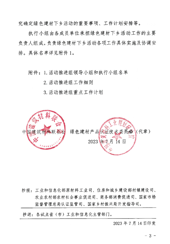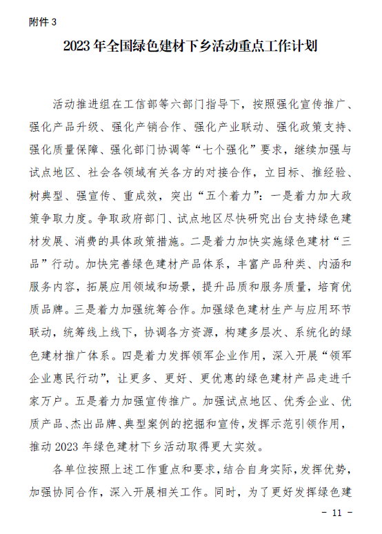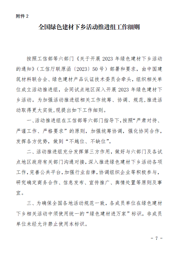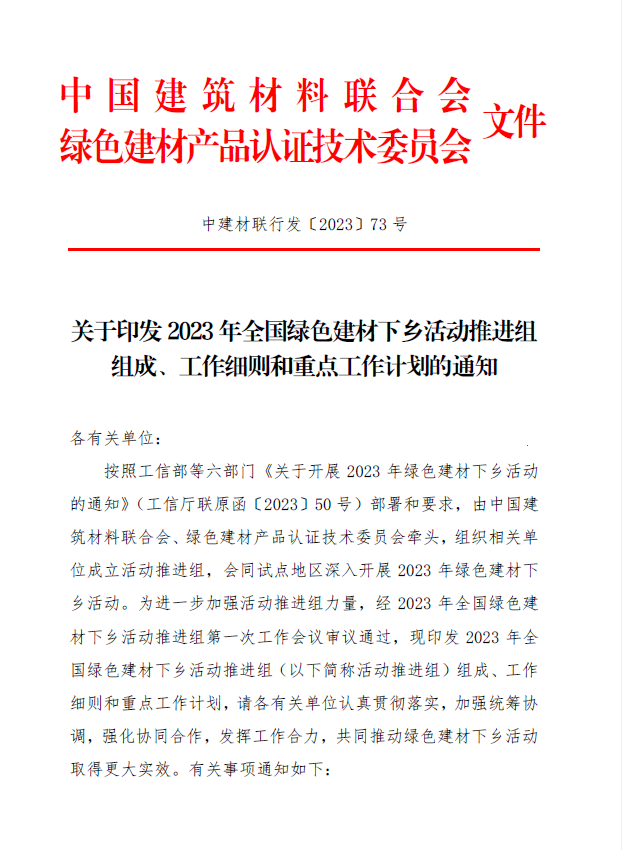 關于印發2023年全國綠色建材下鄉活動推進組組成、工作細則和重點工作計劃的通知