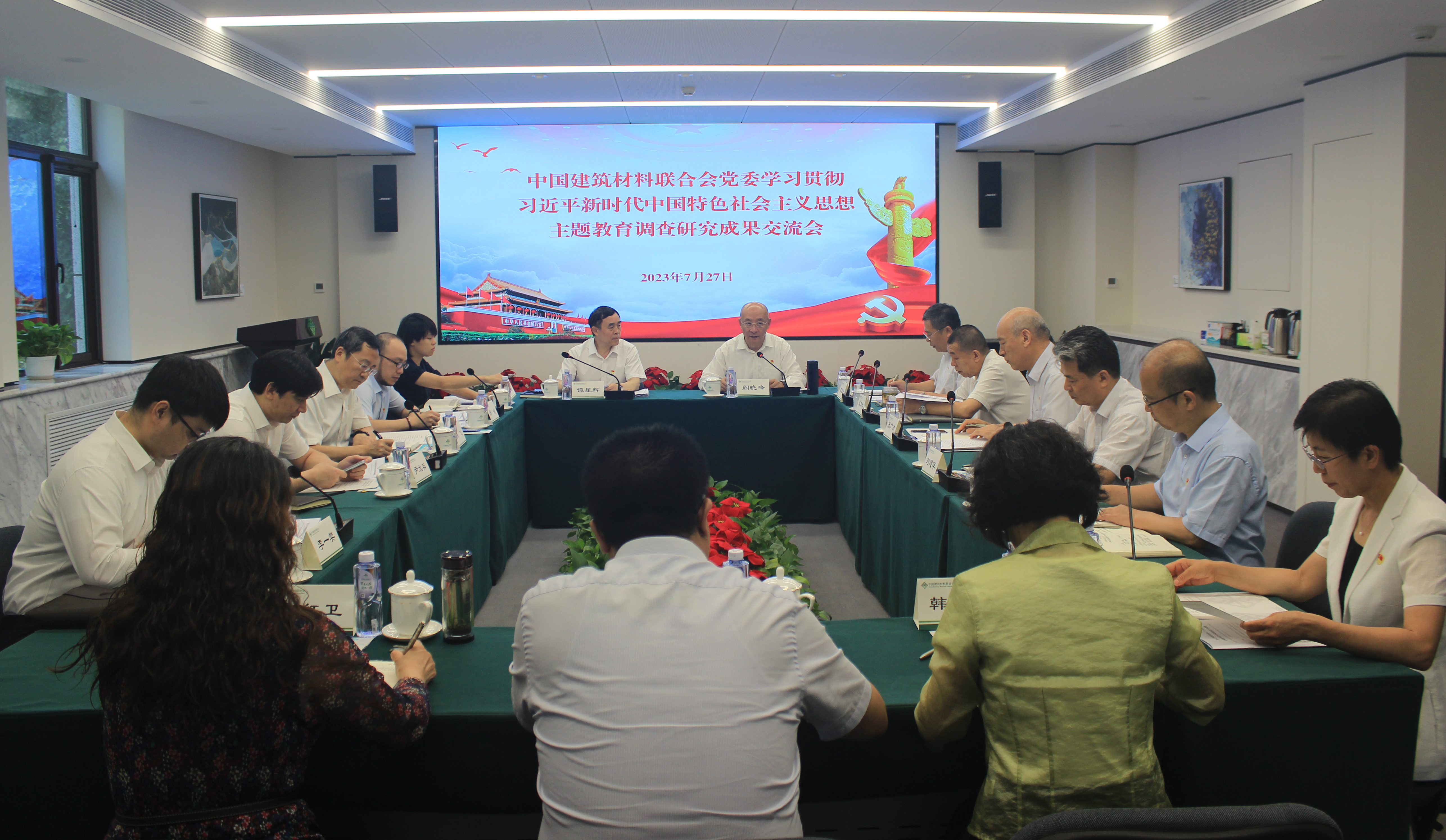 國務院國資委黨委主題教育第十三巡回指導組成員桂群英、鄭澍、肖飛、尹太兵、李一樊,中國建筑材料聯合會總經濟師、副秘書長兼行業工作部主任孫星壽,副秘書長兼科技發展部主任石紅衛,宣傳副總監、《中國建材》雜志社社長韓翠贏,黨群工作部副主任羅德元等參加會議。