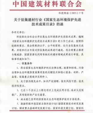 征集建材行業《國家生態環境保護先進技術成果課題》的函