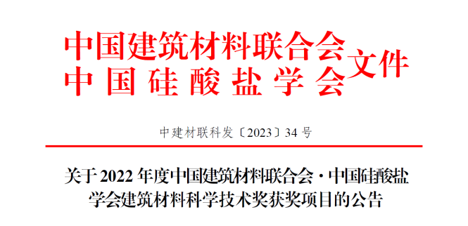 關于2022年度中國建筑材料聯合會·中國硅酸鹽學會建筑材料科學技術獎獲獎項目的公告