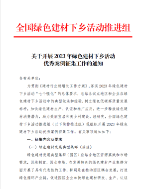關于開展2023年綠色建材下鄉活動優秀案例征集工作的通知