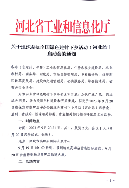 關于組織參加全國綠色建材下鄉活動(河北站)啟動會的通知